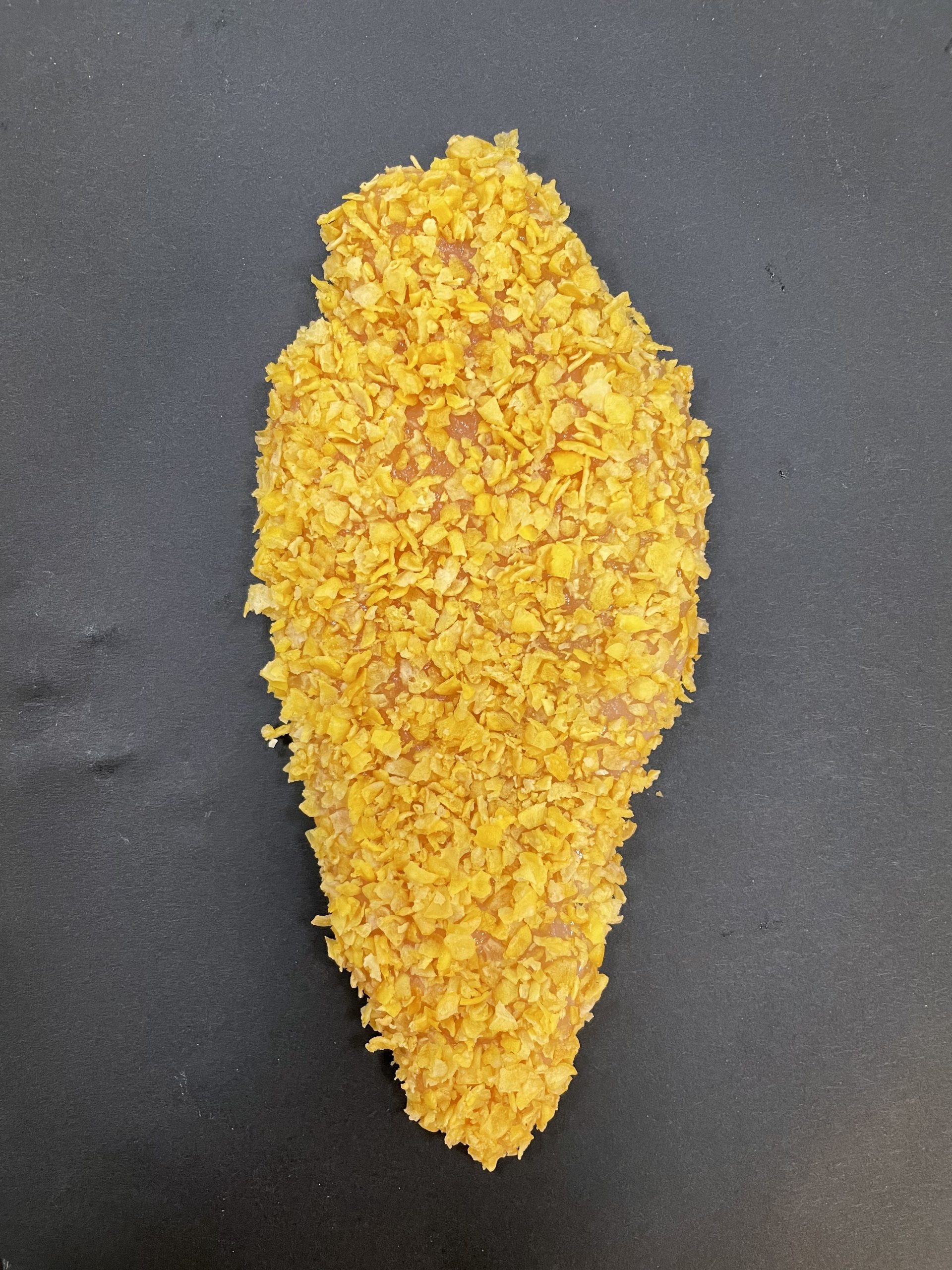 Vengono realizzate con fettine di pollo allevato a terra, successivamente passate in una panatura croccante senza glutine.