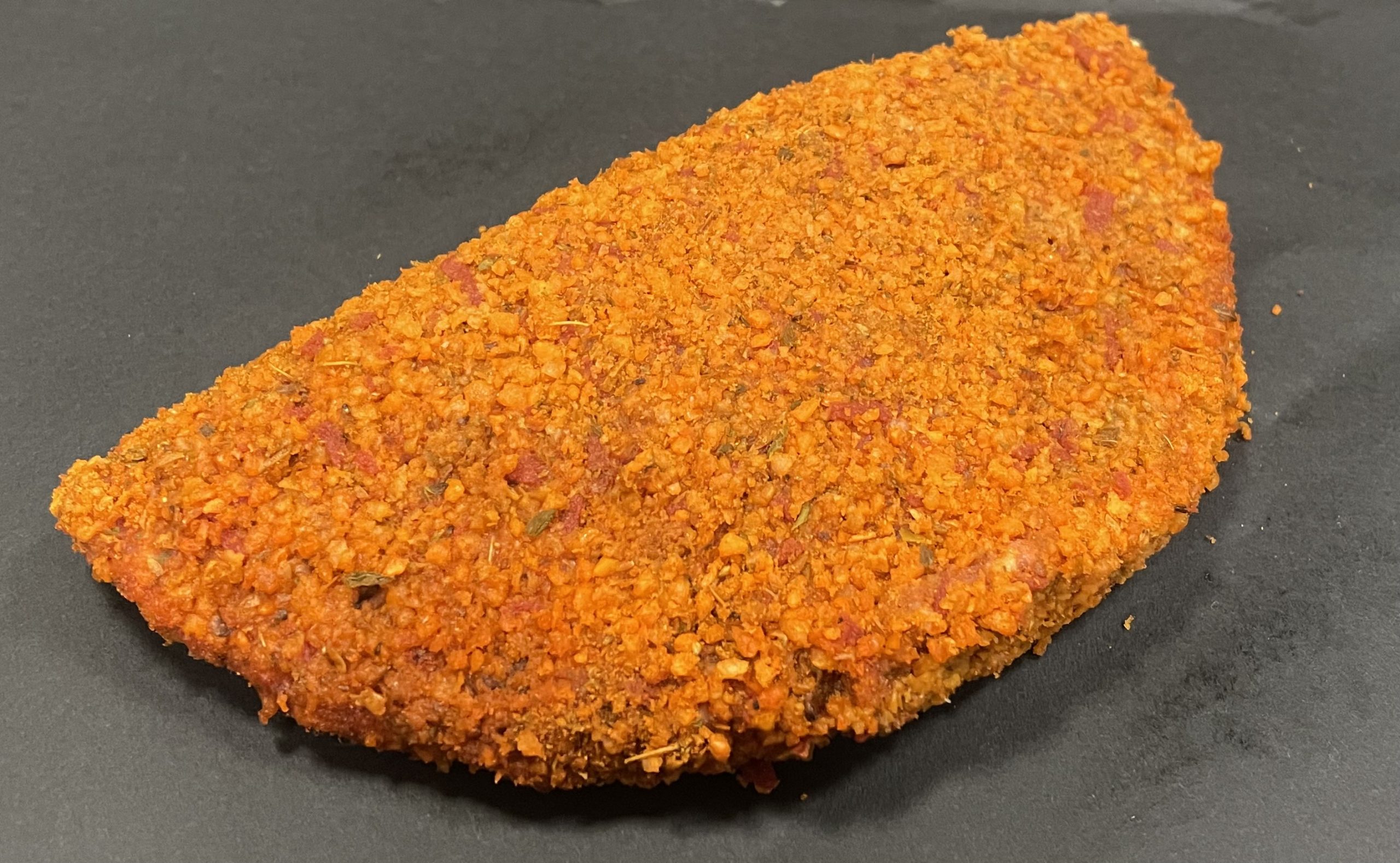 Per finire viene passato in una croccante panatura al leggero gusto di pomodoro.