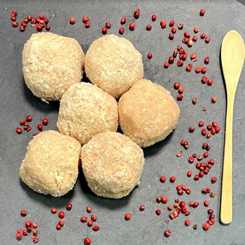 Polpettine di pollo di nostra produzione impanate con uno speciale pan grattato.