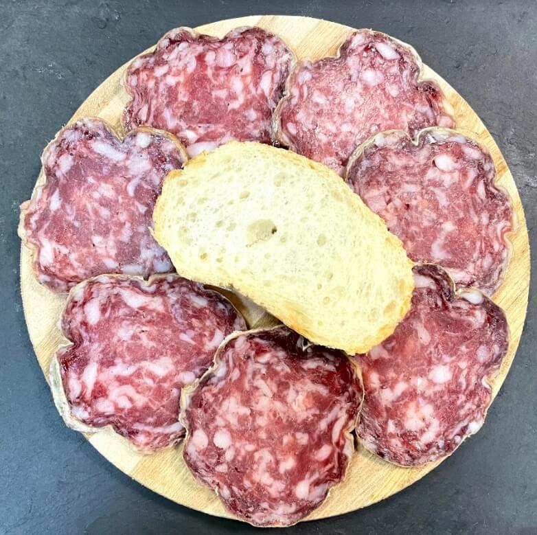 Salame Mantovano nostrano. Viene affettato direttamente al momento della preparazione dell’ordine.
